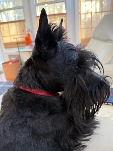 Anne writes in an email 7/21/22: Dear Jane, I hope this email finds you and your Scotties well. Sir Buster Keaton just turned 10 years old, and I want to thank you for bringing him into our lives. As I recall, you didn’t actually approve of his name (I gave up naming rights to my husband, [now deceased]) in exchange for his agreeing to my acquiring a Scottie puppy at the time – Randall named him after his favorite comedian. Sir Buster, as he is known in the neighborhood and to friends and family, has been pronounced by vets and groomers alike as the sweetest Scottie in the universe. Just wanted to send you an update and thank you so much for this lovely dog. I tell him that he is all my good dogs from years past rolled into one. Thank you, Jane.